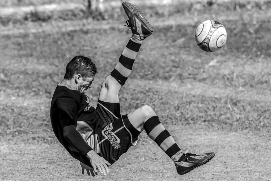 Jogador se prepara para o chute em partida de futebol